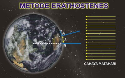 Metode pengukuran keliling Bumi yang pernah dilakukan 2200 tahun yang lalu oleh Erathostenes berhasil menghitung jarak keliling Bumi sebesar 46.300 km atau 250.000 stadia ( ukuran panjang waktu itu ). Metode yang digunakan adalah dengan mengukur sudut bayangan matahari dalam waktu yang bersamaan di 2 tempat yang berbeda yang memiliki kesamaan garis lintang (latitude) atau memiliki kesamaan garis bujur (longitude). Ternyata perhitungan itu hanya selisih 15% terhadap perhitungan modern. Silahkan dicoba!
